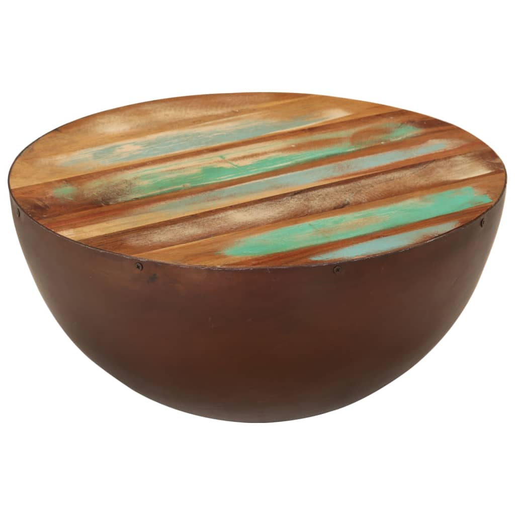 Relax and enjoy entertaining with your family and friends around this retro coffee table! Solid reclaimed wood: Solid reclaimed wood consists of reused timbers such as teak, mango wood, pinewood, and beech. These materials are recycled from old buildings such as factories, sheds, and boats. As every piece is handmade, colours will vary for each product.Sturdy tabletop: The sturdy tabletop of the sofa table provides a stable and secure surface for glasses, vases, fruits or ornaments.Bowl-shaped look: The living room table has a bowl shape which makes a distinctive addition to your interior decor. Good to know:Colours and grains vary per furniture item, making each piece unique. The delivery is random, ensuring the exclusivity and individuality of your product.
